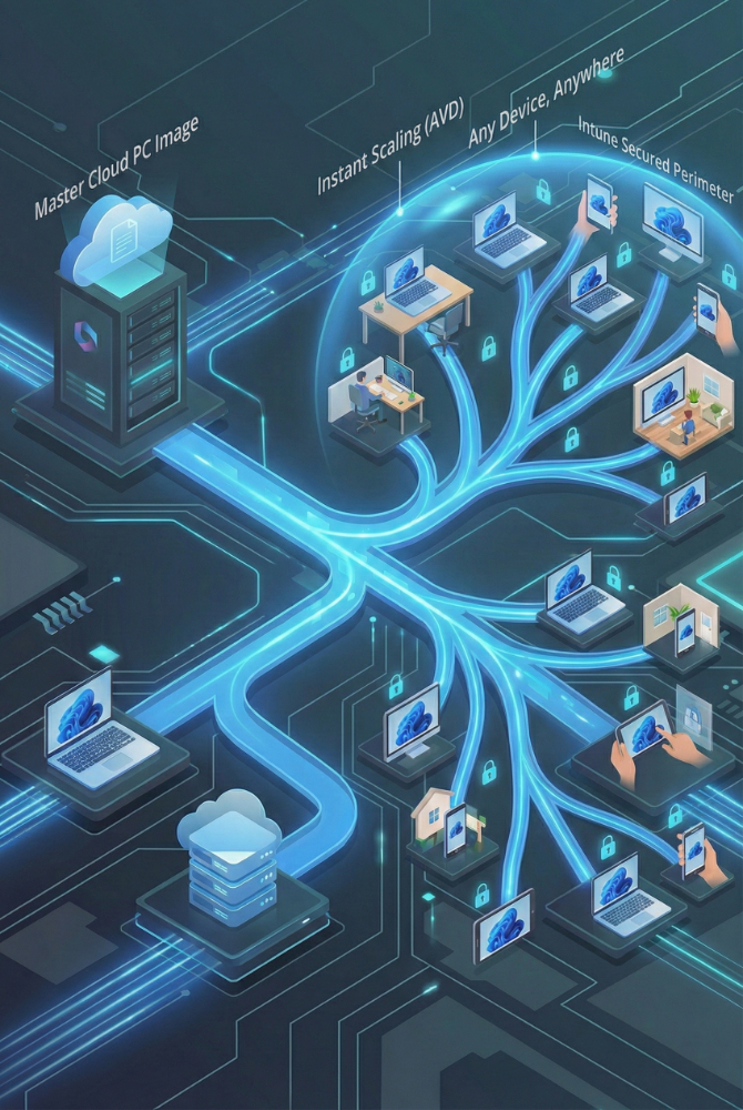 • Windows 365 (Cloud PC): Stream a full, secure Windows experience to any device (iPad, Mac, Android). Your data never lives on the employee's personal laptop; it stays secure in the Microsoft Cloud.